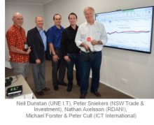 The 2013 Northern Inland Innovator of the Year, Armidale-based ICT International has just reaped the rewards of tapping into the expertise at the University of New England. Regional Development Australia Northern Inland (RDANI) and Trade & Investment NSW facilitated a project which brought innovative minds in the two organisations together. The win-win outcome means enhanced service delivery for the high-tech exporter and the chance for current and recently graduated university students to apply their I.T skills to a real-world application. Academics believe such collaborations will even add to the appeal of UNE to prospective students.