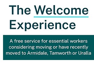 The Welcome Experience is a free service for people who work in occupation areas identified by the NSW Government. If you are planning to relocate or have recently relocated to Armidale, Tamworth or Uralla, or know someone who has, details on the eligibility criteria and the support that can be provided are available on The Welcome Experience page of our website.