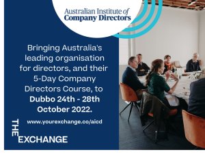 The Exchange is looking forward to bringing Australia’s leading organisation for directors, the Australian Institute of Company Directors (AICD) and their 5 Day Company Directors Course to Dubbo from October 24-28th.