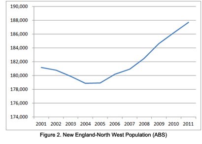 Following a decline between 2001 and 2004, our regional population has recovered during the past eight years to show an average increase of 0.8% or 1,514 people (Figure 2).