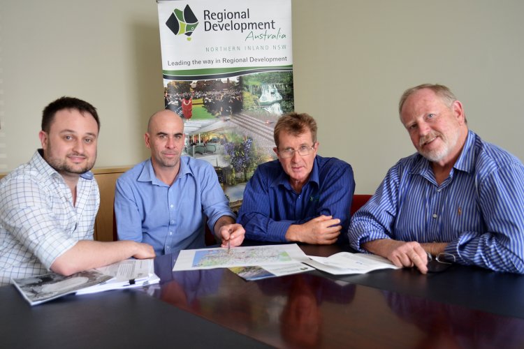 (L to R) James Pryor, Economist, Regional Development Australia Northern Inland Executive Director Nathan Axelsson, Senior Economist David Thompson and Chair, Russell Stewart examine the regional economic data.