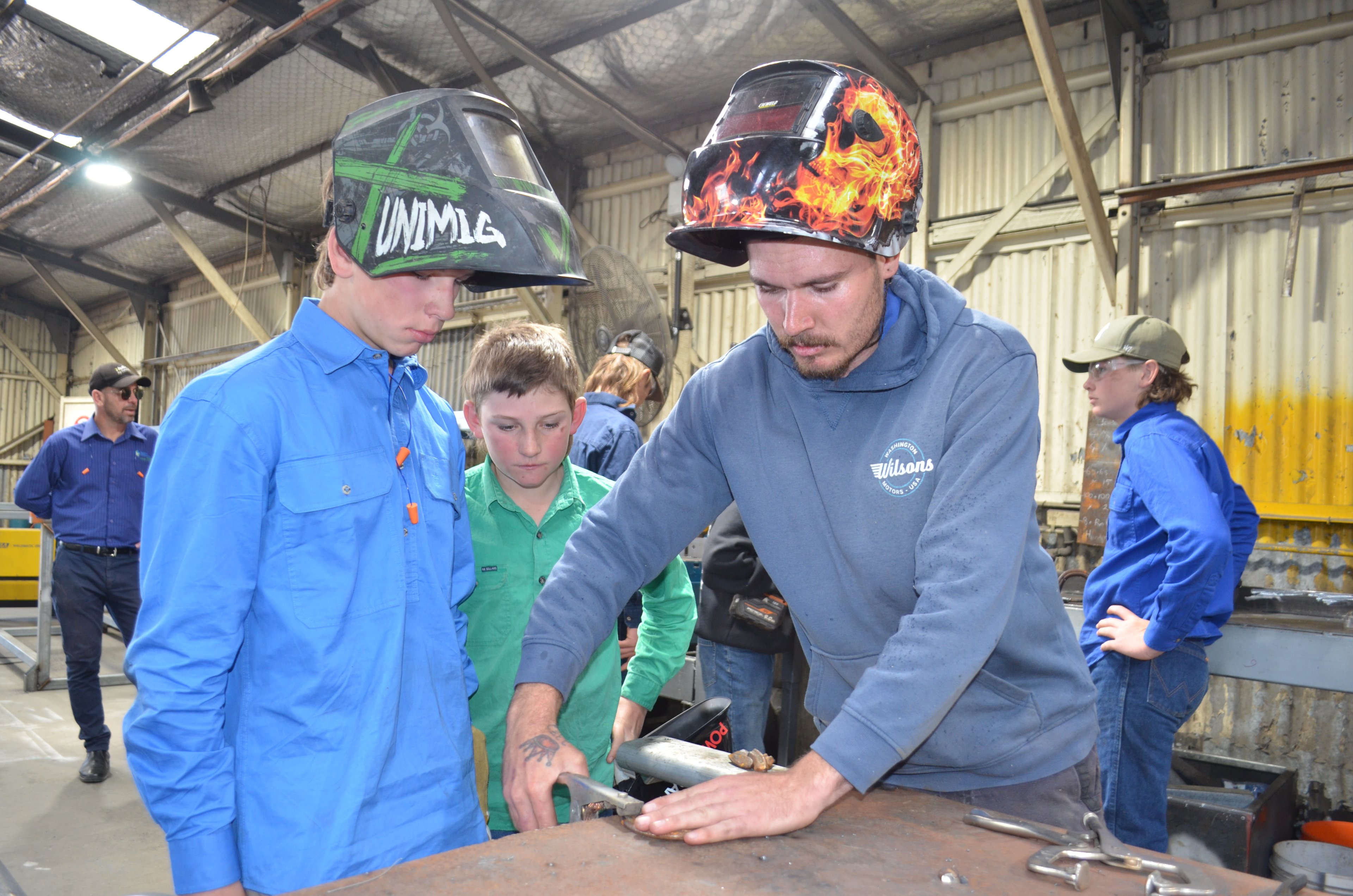 Building upon the success of our Shearing Schools Program, in 2023, we established Welding Works in partnership with BackTrack and Training NSW. This program takes the same hands-on approach to sharing skills as our Wool Works program to spark interest in school-aged students in welding and metal fabrication, focusing on agriculture.