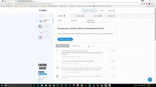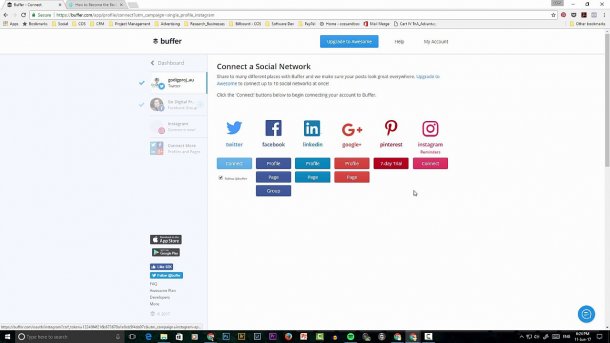 I demonstrate step-by-step how to signup to Buffer and connect your Facebook and Twitter accounts. I have a video below on how to connect your Instagram account as it is a different process involving your buffer app on your mobile phone.