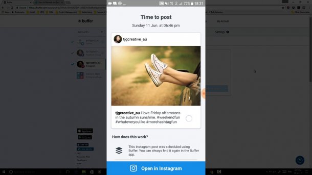 Posting from Buffer to Instagram works a little differently. I show you the process of writing a post in Buffer on my desktop and how you will receive a notification on your phone and then you can manually post on Instagram at the selected time. Instagram has strict rules about posting in the app itself not from another app that is connected, so this is how you can schedule posts and not get your account banned. Also, if you want more information on Instagram you can check out my How to use Instagram post.